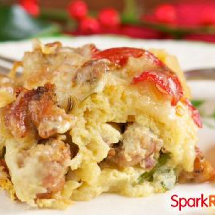 Preparation. Heat oven to 350° F. Sauté the onions, peppers, and mushrooms in a little oil. Layer the vegetables, cheese, and bacon in a casserole dish. ... Read Article