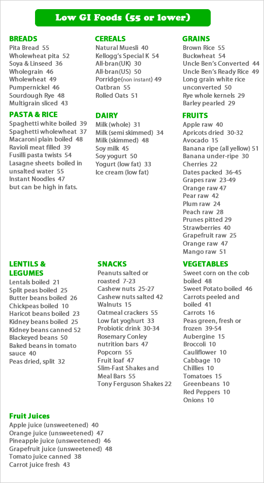 The Glycemic Index Of Many Common Foods - Low-Carb Diet ...